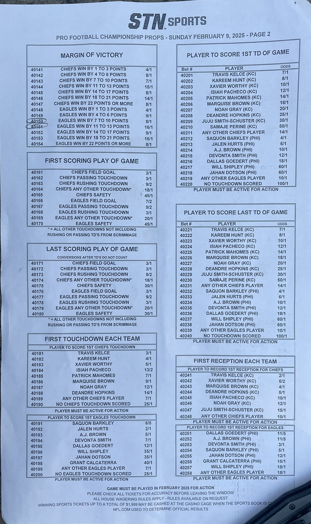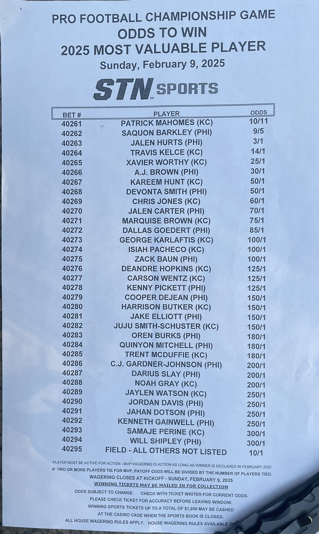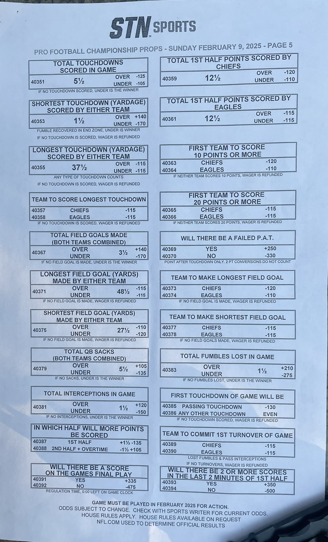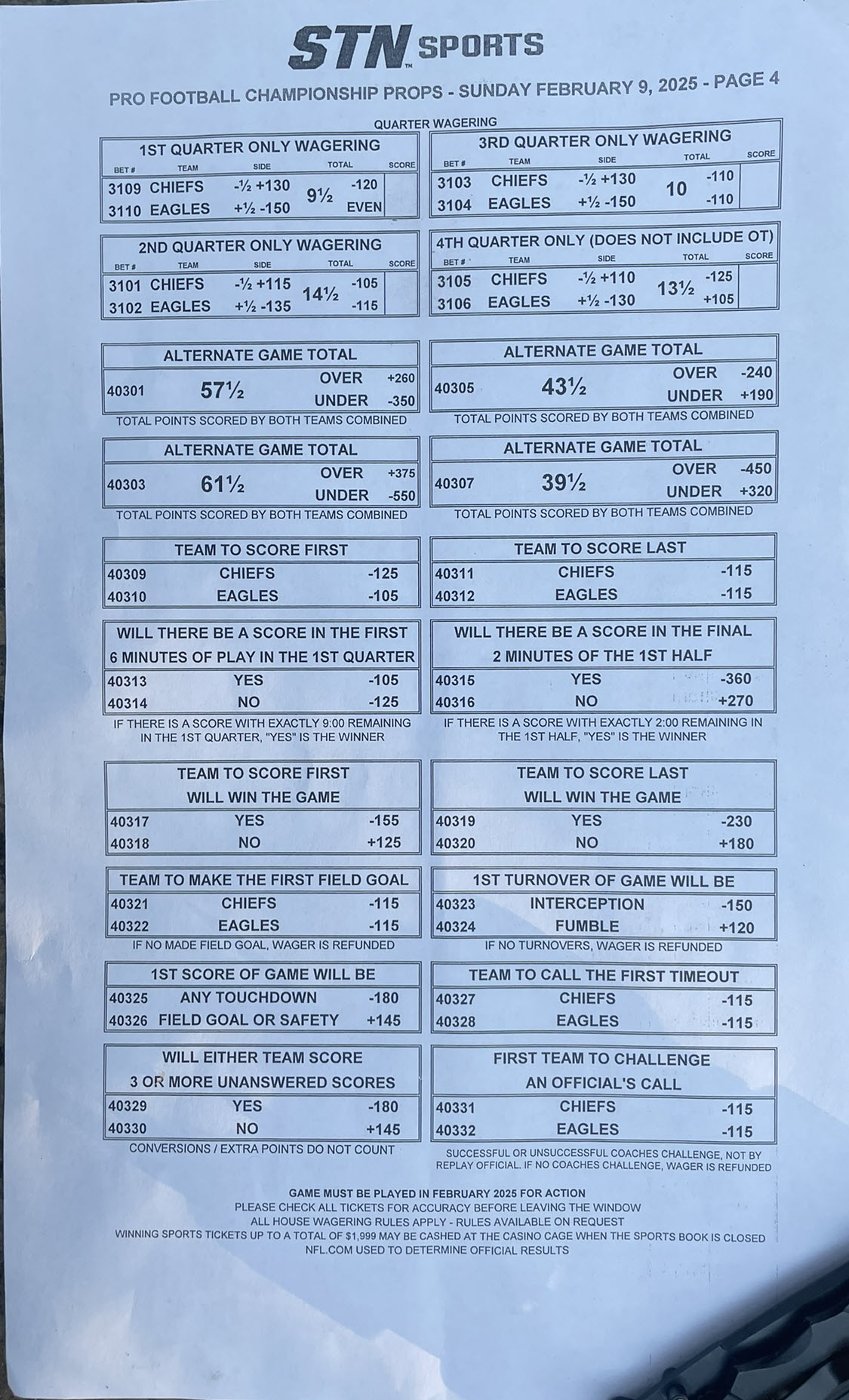 Super Bowl 59 -- Apostas Especiais do Cassino Station