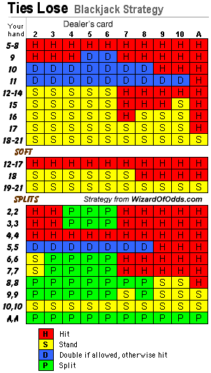 Não existe um mandamento na Bíblia sobre roubar? Mostro que a vantagem da casa nesse jogo é de 9,3% (ai!). Aqui está a estratégia básica apropriada para esta variação de Blackjack em que o empate perde. Veja a coluna nº 110 para a versão em que o jogador pode dobrar a aposta com mãos fracas.