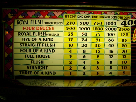 Pelo que sei, o jogo de video poker mais generoso em Las Vegas é o Loose Deuces de 5 centavos com um retorno de 101,60% no Fitzgeralds. Ele fica no andar de cima, perto da área de apostas esportivas.