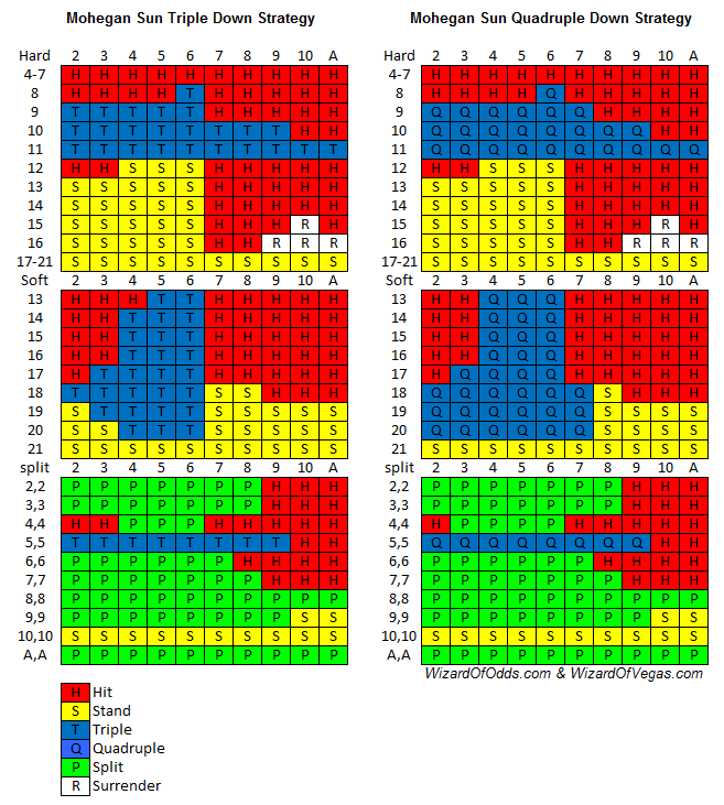 Me disseram que no blackjack usam seis baralhos, param no 17 suave, permitem desistir e dobrar após uma divisão, mas não permitem dividir ases novamente. Normalmente, a vantagem da casa sob essas regras seria de 0,36%. Não tenho certeza se o jogador poderá triplicar/quadruplicar após uma divisão. Aqui está a vantagem do jogador sob diferentes conjuntos de regras: