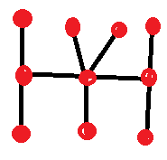 Usando apenas linhas retas, desenhe todas as figuras onde a soma das interseções e dos becos sem saída seja igual a 10. Não pode haver nenhum laço fechado. Também não pode haver duas figuras equivalentes. Qualquer interseção deve ter pelo menos três caminhos partindo dela.