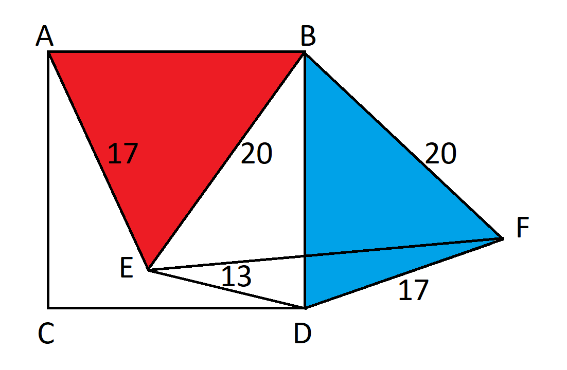 Primeiro, gire o triângulo ABE 90 graus para formar um novo triângulo BDF.