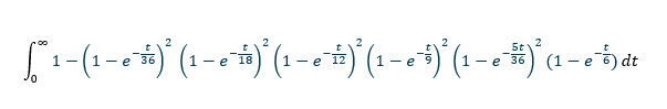 (1-exp(-t/36))^2 * (1-exp(-t/18))^2 * (1-exp(-t/12))^2 * (1-exp(-t/9))^2 * (1-exp(-5t/36))^2 * (1-exp(-t/6))