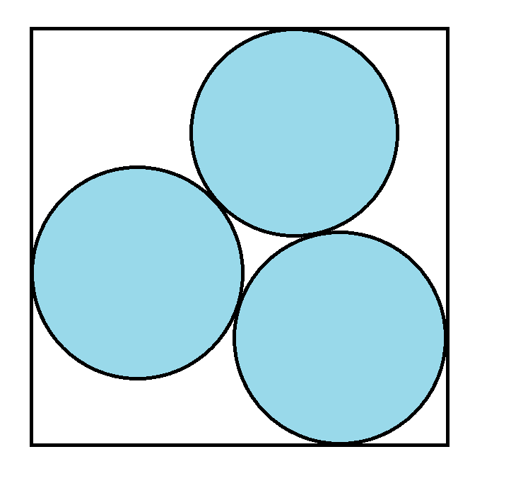 Três círculos de raio 1 estão inscritos em um quadrado de tamanho mínimo. Qual é o comprimento de um lado do quadrado?