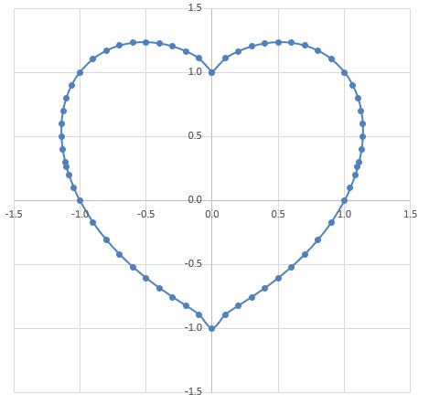 Aqui está um gráfico com 63 pontos que se encaixam nessa equação que eu fiz para você.