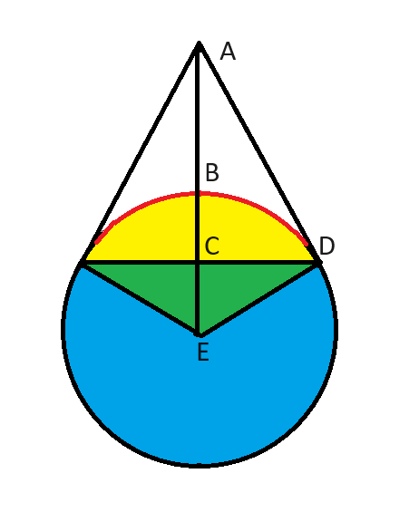 - O ângulo ADE mede 90 graus, porque AD é tangente à circunferência.