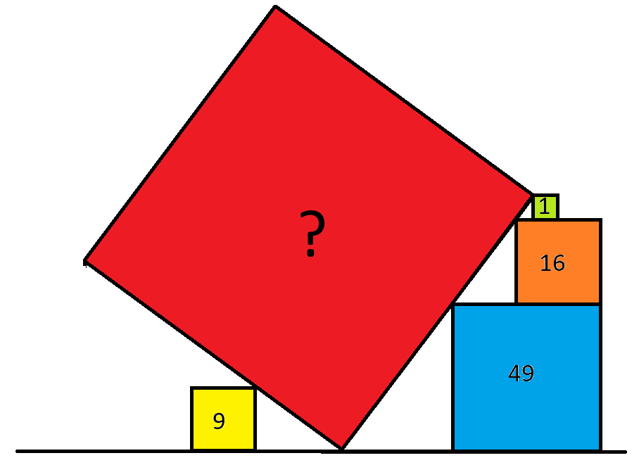 Na imagem acima, os números representam as áreas dos quatro quadrados. Qual é a área do quadrado vermelho?