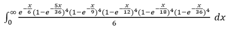Para escrever em formato de texto: exp(-x/6)*(1-exp(-5x/36))^4*(1-exp(-4x/36))^4*(1-exp(-3x/36))^4*(1-exp(-2x/36))^4*(1-exp(-1x/36))^4/6