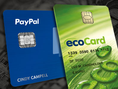 ... para o ecoCard, a validade é de 4 anos, enquanto o PayPal oferece apenas 3 anos com um único cartão, mas permite transações de até 940 USD por dia em caixas eletrônicos. O limite diário para compras em pontos de venda é de 5.000 USD, sendo o euro e o dólar americano as únicas moedas disponíveis neste cartão pré-pago MasterCard.