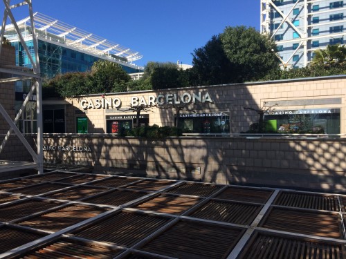 Barcelona tem um cassino, e fica perto da praia. Está próximo a um par de prédios altos em formato de caixa, que eu acho que são os mais altos da cidade, então não deve ser difícil de encontrar.