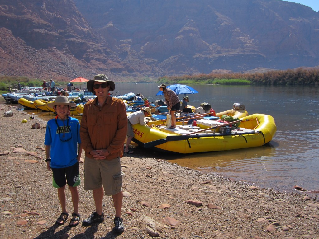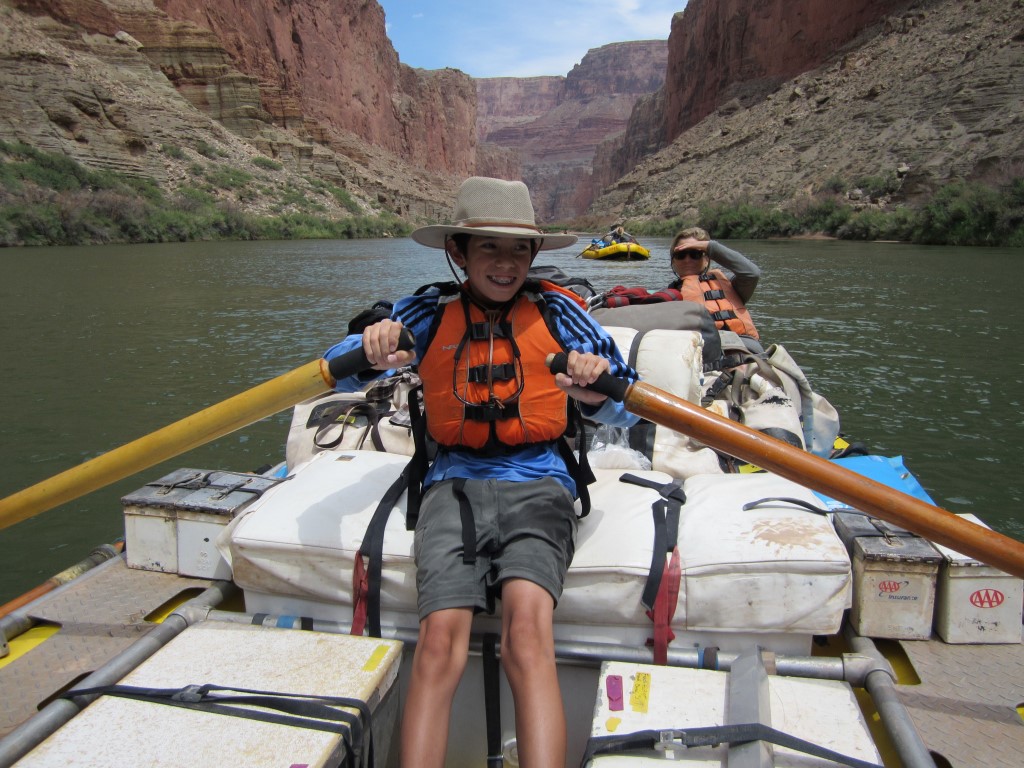 Normalmente, a OARS exige idade mínima de 12 anos para essa excursão. Na época em que fizemos, meu filho tinha 11 anos e meio. Então, solicitei uma exceção a essa regra. Garanti à OARS que ele era um bom nadador e que conseguiria lidar com a caminhada de volta do cânion, como comprovado por uma foto (link acima da imagem) de nós dois no topo do Monte Whitney quando ele tinha 10 anos. Na verdade, eu preferia fazer o segundo trecho do Grand Canyon, mas a OARS concordou em deixar o Aidan ir apenas se mudássemos para o primeiro trecho, que tem corredeiras mais tranquilas.