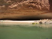 Não tenho certeza, mas acho que acampamos em um camping chamado "19.4 mile campground", que fica obviamente a 19.4 milhas rio abaixo. Era um lugar agradável e sombreado, com um quebra-mar de areia e espaço para cada um atrás da praia, perto das falésias.