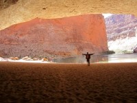 Logo depois disso, passamos algum tempo na Caverna Redwall , uma enorme câmara com piso de areia que, segundo John Wesley Powell , poderia acomodar 50.000 pessoas. Com todo o respeito ao Sr. Powell, eu diria que o número está mais próximo de 5.000. Por outro lado, provavelmente esperava mais espaço para as pernas e os cotovelos do que ele. Aliás, Powell perdeu o braço direito na Guerra Civil, então, com certeza, ele esperava menos espaço para os cotovelos.