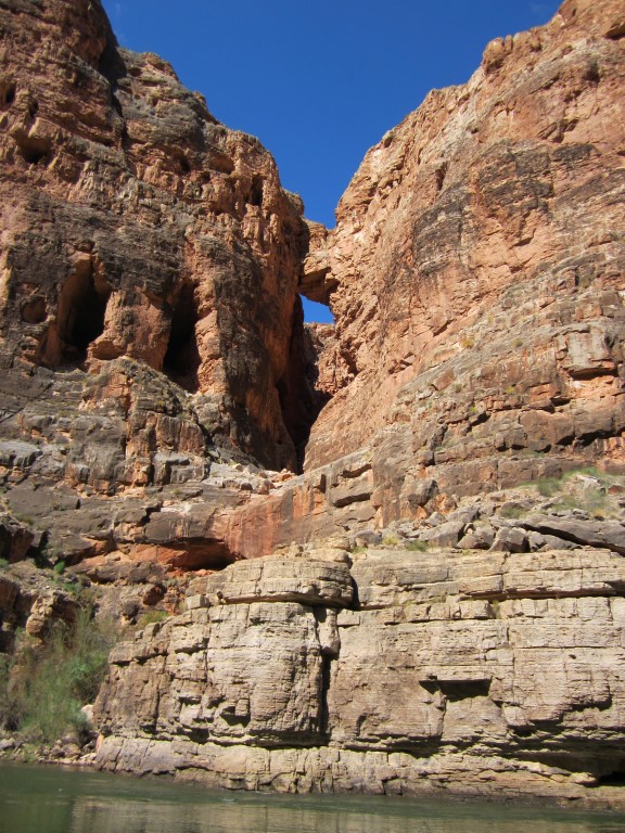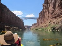 O primeiro local digno de nota foi a Ponte Navajo , que tínhamos acabado de atravessar de carro e agora estávamos navegando sob ela. Ela se eleva a 143 metros acima do rio. Já estávamos no que parecia um cânion, embora, quando chegássemos ao Phantom Ranch cinco dias depois, a borda estivesse dez vezes mais alta.