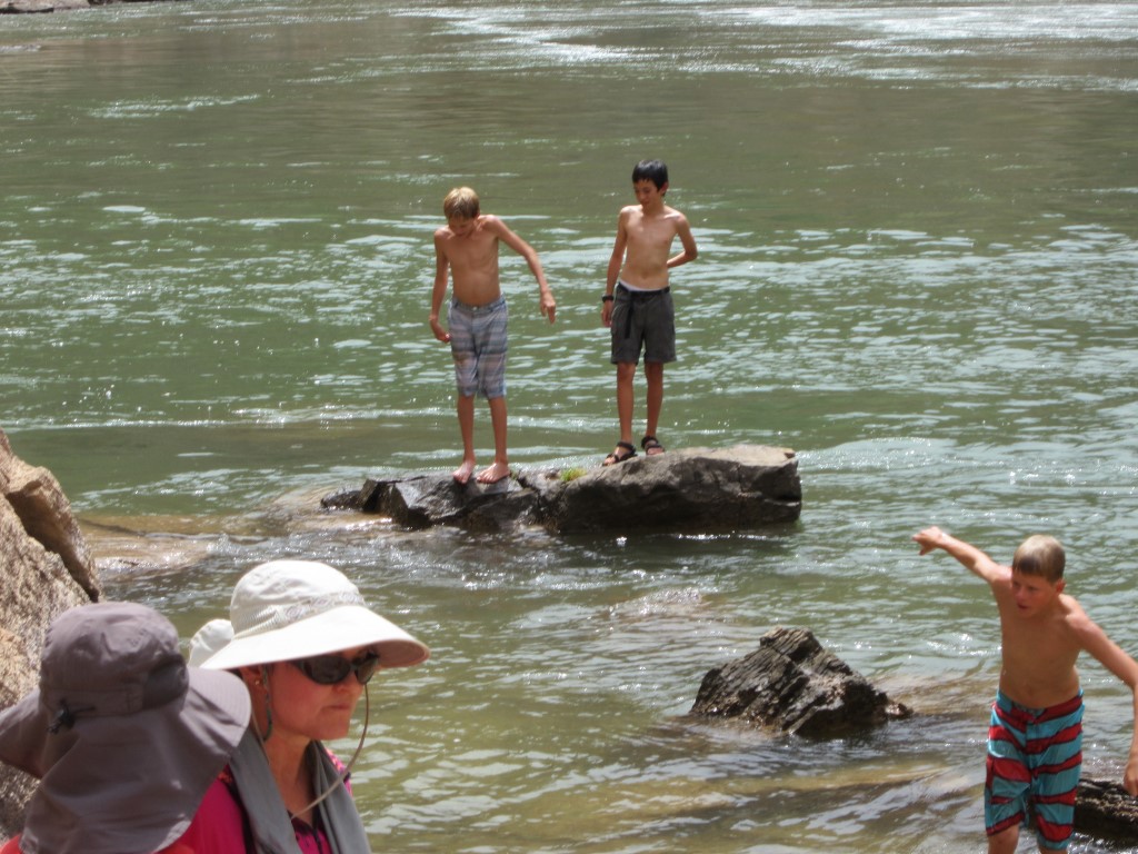 Chegamos ao topo em cerca de 5 horas. Não que fosse uma corrida, mas o tempo de cada um no nosso grupo variou de 4 a 6 horas. Nosso grupo de 13 pessoas se encontrou no Bright Angel Lodge e saboreamos um sorvete ou almoçamos. Os outros sete hóspedes, que não fizeram a trilha, seguiram para a segunda parte da viagem pelo rio.