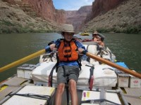 Durante a reunião inicial em Flagstaff, perguntaram à nossa líder se os hóspedes poderiam remar nos barcos. Ela respondeu que não só era permitido, como os guias certamente apreciariam a pausa.Durante os trechos mais fáceis do rio, que representam a maior parte dele, aproveitei bastante para remar. Na minha opinião, era muito mais divertido do que usar o remo ergométrico em casa, e os guias pareciam gostar bastante. Sempre que chegávamos a um trecho mais técnico, eles pediam os remos de volta.