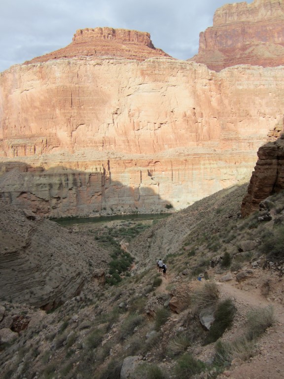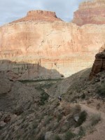 A trilha que vai do rio em Pipe Creek até a Margem Sul é, na minha opinião, uma das melhores trilhas dos Estados Unidos. O percurso de sete milhas (só ida) atravessa diversas camadas rochosas e zonas climáticas. A metade inferior é em grande parte sombreada e segue um riacho em boa parte do trajeto. Na metade do caminho fica Indian Gardens, uma área de camping com banheiros e água. O restante da subida é feito principalmente por ziguezagues ao longo da íngreme parede do cânion.Essa parte deve ser feita preferencialmente antes das 10h ou depois das 17h para evitar o sol escaldante. Ao longo da trilha que sobe a partir de Indian Gardens, há dois banheiros e fontes de água, a 2,4 e 4,8 quilômetros da borda do cânion.
