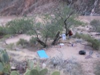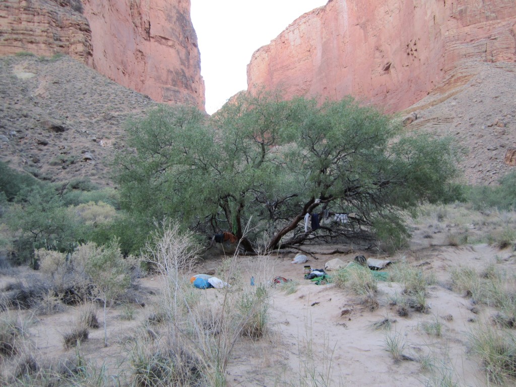 Resumindo, os outros grupos de rafting foram compreensivos com o nosso problema e nos cederam o acampamento Lower Cremation, entre as milhas 87 e 88. Era semelhante ao local da terceira noite, com bastante espaço, mas rochoso e ensolarado.