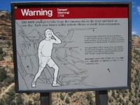 Em comparação com a temperatura do ar, a temperatura da água era de refrescantes 48 graus. O motivo de ser tão mais fria que a temperatura do ar é que a água vem diretamente do fundo do Lago Powell. A água do rio aquece um grau a cada 48 quilômetros (30 milhas) de extensão.