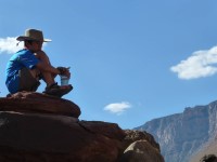 No quarto dia, nosso guia foi o Jefe, meu favorito. Ele é um guia experiente e experiente, com muitas histórias interessantes sobre o cânion. Nossos companheiros de viagem eram novamente as irmãs havaianas.Caso você esteja se perguntando como foi decidido quem ia de barco com quem, os guias incentivaram os hóspedes a variar os passeios a cada dia para que pudessem andar com todos os guias. Essa foi uma boa sugestão. Caso contrário, era por ordem de chegada. Eu estava secretamente preocupada que ninguém quisesse andar de barco comigo, por medo de ser submetida a um monte de perguntas triviais e/ou ouvir meu espanhol extremamente ruim, então esperei que todos os outros encontrassem um barco e meu filho e eu ficaríamos com os únicos lugares restantes.
