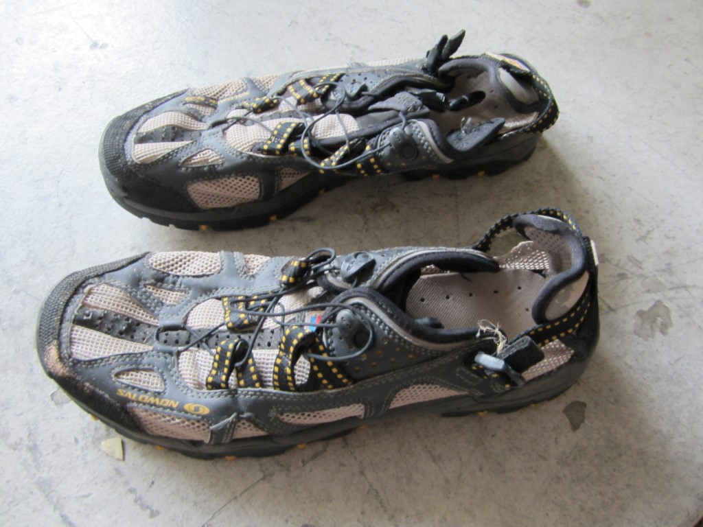 - Sapatos aquáticos . Esses sapatos são feitos para caminhar na água, como no Narrows, em Zion. São como sapatos normais, mas feitos de um material de malha que drena rapidamente. Um bom par de sandálias (não chinelos de dedo) seria suficiente, mas fizemos bastante trilha e, para isso, os sapatos são mais confortáveis e menos escorregadios.