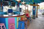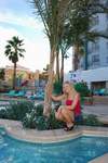 O Hooters oferece uma piscina de tamanho razoável para um hotel do seu porte. Na verdade, são três piscinas, além de duas banheiras de hidromassagem. Ao redor das piscinas, há cerca de 50 espreguiçadeiras, uma dúzia de palmeiras, uma pequena área de areia e uma cascata. A cascata não estava funcionando quando tirei fotos com a Lisa, mas estava com água quando voltei uma semana depois para a minha estadia. O bar ao ar livre "Nipper's" fica perto e serve bebidas, mas estava fechado quando tirei as fotos.