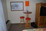 Até os quartos do hotel são decorados com o laranja e branco característicos do Hooters, com a maioria dos móveis sendo de pinho. Como mostram as fotos, era um quarto básico, sem luxos. Com exceção das janelas, achei o quarto limpo e tudo parecia funcionar. Só precisei tirar uma foto de quão suja estava a janela. Tirei outra foto com a janela aberta, para efeito de comparação. Você também pode ver as fotos do próprio quarto.