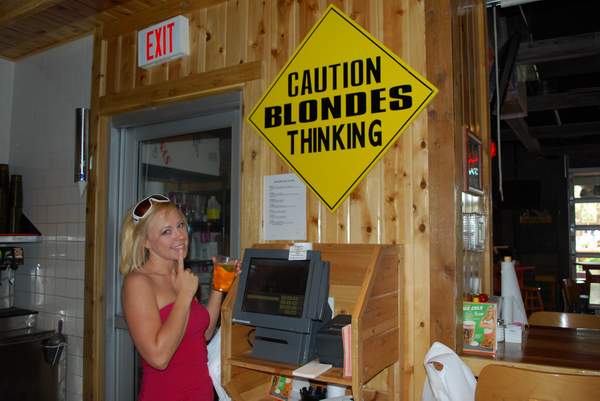 Restaurante Hooters: A comida, tipicamente asinhas de frango Buffalo e cerveja, é a mesma encontrada em todos os outros restaurantes Hooters do mundo. Devo admitir que até que gosto. Uma amiga minha disse que teve desejos por asinhas de frango e tequila do Hooters quando estava grávida. Ela decidiu aproveitar as asinhas, mas dispensar a tequila. Lisa, a modelo da foto, adora os picles fritos deles.
