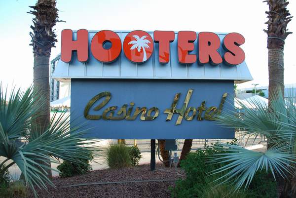 O cassino Hooters é de pequeno a médio porte e fica a uma curta caminhada da Strip. O nome anterior do estabelecimento era San Remo. Fiel aos restaurantes de mesmo nome, toda a propriedade do Hooters Casino and Hotel é decorada em branco e laranja, com muitas luzes de néon e piso de madeira. O cassino consegue replicar com sucesso a atmosfera divertida, porém brega, que existe nos restaurantes Hooters em todo o mundo. Não se pode levar muito a sério um negócio dedicado à paixão por seios (a coisa da coruja não engana ninguém). Fiz o check-in no Hooters por uma noite, em 15 de julho de 2009. Segue abaixo minha avaliação.Localização