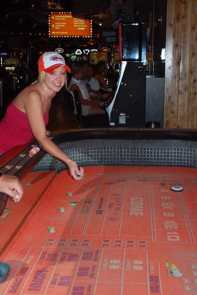 De acordo com o Guia de Cassinos Americanos de 2009 , o Hooters possui 27.546 pés quadrados de área de cassino. Para efeito de comparação, o MGM tem quase seis vezes mais espaço, com 156.023 pés quadrados. Segundo o Conselho de Controle de Jogos de Nevada , o Hooters possui 25 mesas de jogos e 2 mesas de pôquer, número que também contei, além de 616 máquinas caça-níqueis. Em comparação, o MGM Grand possui 178 mesas de jogos, 22 mesas de pôquer e 2.470 máquinas caça-níqueis. As mesas de jogos que encontrei foram as seguintes: