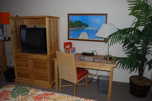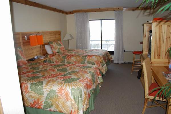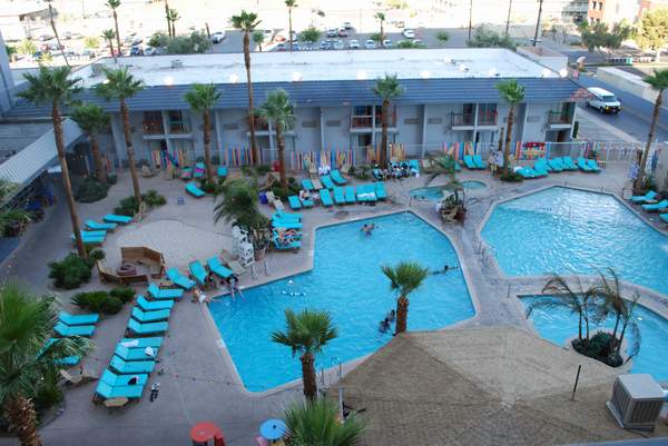 Quando me hospedei lá, meu quarto com "vista para o mar" no prédio alto custou US$ 41,65, incluindo uma "taxa de resort" de US$ 5,60 e não incluindo o imposto hoteleiro de Nevada de 12%. Vou dizer o óbvio: não havia vista para o mar, apenas algumas pranchas de surfe perto dos elevadores. A única coisa que a tal taxa de resort incluía e que você normalmente não espera receber eram ligações locais e para números gratuitos. Os quartos no prédio baixo perto da piscina eram um pouco mais baratos.