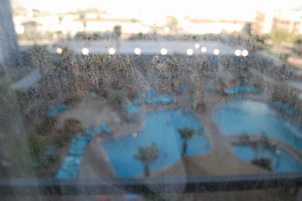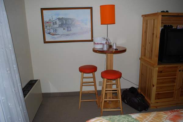 Até os quartos do hotel são decorados com o laranja e branco característicos do Hooters, com a maioria dos móveis sendo de pinho. Como mostram as fotos, era um quarto básico, sem luxos. Com exceção das janelas, achei o quarto limpo e tudo parecia funcionar. Só precisei tirar uma foto de quão suja estava a janela. Tirei outra foto com a janela aberta, para efeito de comparação. Você também pode ver as fotos do próprio quarto.