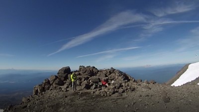 A vista do cume era magnífica. Assim que chegamos ao topo, fomos recompensados com uma vista deslumbrante do Monte Rainier ao norte, que eu não via desde que o havia escalado dois anos antes. A oeste, estava o Monte Santa Helena. Ao sul, o Monte Hood e o Monte Jefferson, e eu mal conseguia distinguir as Três Irmãs. Depois das fotos e do vídeo obrigatórios no cume, conversamos com os outros alpinistas naquela manhã de sexta-feira, 25 de agosto de 2017. Aquela sensação de êxtase no cume é sempre melhor quando compartilhada.
