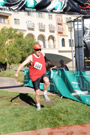 O último trecho da corrida foi em terreno plano, entre a loja Lowes e o agora vazio Ritz Carlton, que fechou as portas há cerca de um ano. A linha de chegada ficava na área comercial de Lake Las Vegas. Como escrevi antes, eu estava apenas seguindo a multidão e não sabia onde era a linha de chegada. No entanto, à medida que me aproximava, conseguia ouvir a multidão. Dei um impulso extra e saltei correndo na própria linha de chegada.