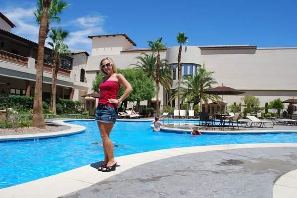 Ao contrário da maioria dos hotéis de Las Vegas, onde leva uma eternidade para chegar do carro ao quarto, o Tuscany tem um formato de motel. Ele ocupa uma área enorme, com vários prédios independentes de três andares e amplo estacionamento entre eles. Consequentemente, você pode estacionar perto do seu quarto. Há também piscina, academia, lavanderia e um belo paisagismo. A piscina é relativamente pequena, mas tem um formato sinuoso atraente e oferece bastante espaço para relaxar. Fica perto de uma cafeteria para lanches e bebidas não alcoólicas.