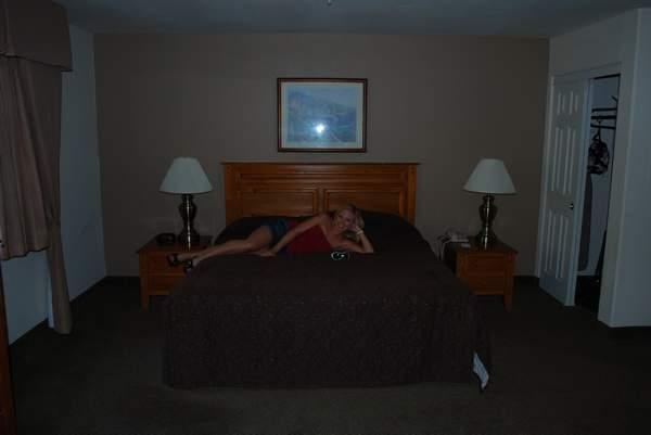 Quando me hospedei lá numa quarta-feira à noite, meu quarto custou US$ 39, mais 12% de imposto estadual de Nevada (a alíquota do imposto tinha acabado de subir). Não precisei esperar na recepção do hotel. Me disseram que a segunda noite custaria apenas US$ 22. Esqueci de levar minha fita métrica, mas os quartos têm aproximadamente o dobro do tamanho de um quarto de hotel normal. Meu quarto básico tinha cozinha, mesa, sofá, cama e um banheiro grande.
