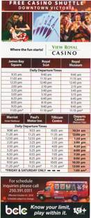 No entanto, isso acabou não sendo necessário. O View Royal facilita o acesso a partir do centro de Victoria. Os simpáticos funcionários do centro de visitantes no porto interior de Victoria me deram um folheto do cassino e um horário do ônibus gratuito. Esse ônibus faz um percurso circular a cada 90 minutos, com seis paradas no centro de Victoria, incluindo o Museu Real.