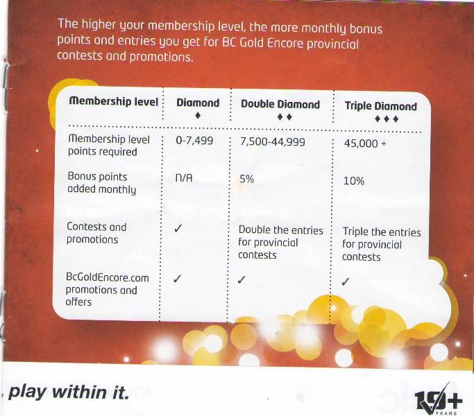 Existem três níveis de cartões: diamante simples, duplo e triplo. Basta um volume de apostas de 7.500 para obter o diamante duplo e 45.000 para o triplo. Comparado com Las Vegas, é bem mais fácil alcançar os níveis mais altos. Os membros com diamante duplo recebem 5% a mais em "pontos bônus" e os membros com diamante triplo recebem 10%.
