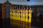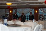 Antes de prosseguir, todas as refeições, especialmente os jantares, a bordo do navio foram excepcionais. No café da manhã e no almoço, havia uma mistura de pratos ocidentais e chineses disponíveis no buffet. Com exceção da primeira noite, os jantares foram servidos no estilo chinês, ou seja, vários pratos eram colocados em uma bandeja giratória no centro de uma mesa redonda. Os passageiros podiam se servir à vontade. Sempre serviam muito mais comida do que conseguíamos comer. Era um desafio manter a disciplina e não comer demais (estou tentando manter meu peso abaixo de 79 kg). Todos os jantares foram excelentes; foi uma das melhores comidas chinesas que já provei. A comida era mais autêntica do que a que se encontra na maioria dos restaurantes chineses americanos, mas mais suave do que a que se encontra em um restaurante chinês voltado para o público chinês. Era um equilíbrio delicado de se encontrar, mas o chef conseguiu.