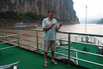 Às 17h25, atravessamos o Desfiladeiro de Qutang, o terceiro dos três desfiladeiros. Este é o mais curto, mas o mais bonito dos três. O verso da nota de 10 yuans chineses traz uma imagem deste trecho. À noite, houve um show de cabaré, no qual os passageiros foram convidados a participar. Eu me ofereci para fazer stand-up comedy. Expliquei especificamente ao diretor do cruzeiro como ele deveria me apresentar, pois isso me levou à minha primeira piada. No entanto, o guia fluvial acabou sendo o mestre de cerimônias, e minha apresentação foi: "Aqui está Michael para fazer alguma coisa". O diretor do cruzeiro me avisou que nosso grupo de passageiros não tinha senso de humor nenhum, e ele estava certo. A maioria das pessoas que optaram por participar eram idosas, muitas das quais talvez não falassem inglês fluentemente. Acho que não me saí tão mal desde meus palpites da temporada de 2005 da NFL.