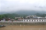 O terceiro dia foi dedicado à Montanha Amarela, ou Huang Shan , como é chamada em chinês. Uma visita a este local foi um dos principais motivos pelos quais optamos pelo cruzeiro mais longo, em vez do mais curto, que não inclui essa parada. Visitei Huang Shan em 1994 por três dias e considero uma das melhores escolhas de destino que já fiz na China. Resumidamente, Huang Shan é uma área cênica com montanhas íngremes cobertas de névoa. Trilhas para caminhadas, algumas delas extremamente íngremes, permitem que os turistas apreciem uma das partes mais belas da China e se exercitem ao mesmo tempo. No entanto, eu não sabia que a viagem de ônibus do navio até lá levava 2 horas e meia, deixando apenas cerca de 5 horas no destino. Da minha visita anterior, eu me lembrava da estrada que levava até lá como sendo extremamente estreita e sinuosa. Minha família tem muita tendência a enjoar em viagens, como conto no meu blog sobre nossas férias de primavera em San Felipe. Além disso, estava chovendo no navio, o que me fez pensar que a chuva seria ainda pior nas montanhas. Então, acabamos desistindo e ficamos no navio. Durante o dia, pegamos um ônibus público para a cidade de Guichi, onde demos uma olhada e contratamos um taxista para nos mostrar os arredores.