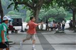 Depois de subir e descer a montanha, tínhamos algum tempo livre, então joguei tênis com alguém, usando uma bola de tênis presa a um elástico comprido, com a outra ponta amarrada a um objeto pesado. Foi suado, mas divertido. Depois, fomos ao Bazar da Dinastia Qing. Tínhamos a opção de fazer uma visita guiada ao Templo de Confúcio ou simplesmente comprar nas diversas barracas. Normalmente, detesto fazer compras, mas neste lugar foi divertido, e tudo era relativamente barato em comparação com os Estados Unidos. Encontrei muitas lembranças do meu herói Lei Feng , incluindo uma pasta, que vocês verão em algumas fotos minhas daqui para frente. Foi uma boa combinação de atividade organizada com tempo livre para fazermos o que quiséssemos. Às 18h, retornamos ao navio. Jantamos maravilhosamente bem às 19h.