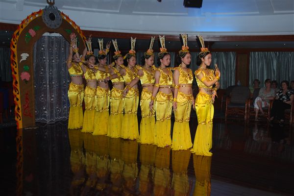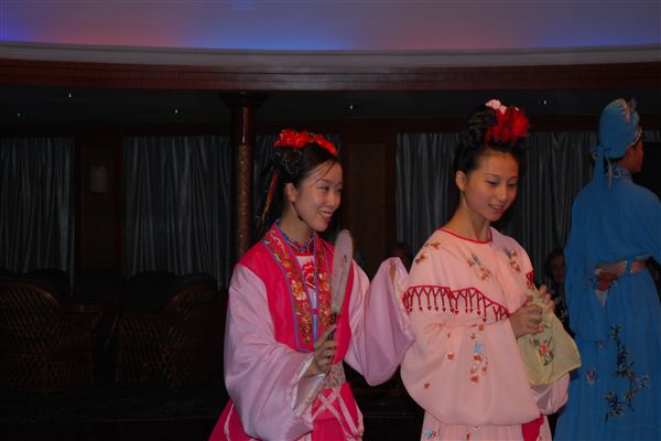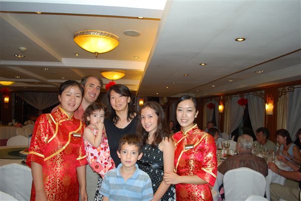Outra opção é fazer um cruzeiro fluvial. O restante deste blog é sobre o meu cruzeiro no Rio Yangtzé. Quando minha família e eu estávamos na China em 2009, queríamos uma maneira confortável e fácil de conhecer mais do país depois de termos nos aventurado em Xangai e Hangzhou. Estávamos com três crianças, de 3, 7 e 11 anos, o que não combinaria bem com uma excursão terrestre agitada, mesmo que particular. Então, reservamos um cruzeiro de 8 dias pelo Rio Yangtzé com a Victoria Cruises . Como em qualquer cruzeiro, pudemos visitar várias cidades e pontos turísticos sem precisar desfazer as malas, exceto para embarcar. Além disso, o tempo de deslocamento entre os lugares nos permitiu relaxar ou aproveitar as atividades a bordo. Comparados aos gigantescos navios oceânicos, achei os passageiros do nosso cruzeiro pelo Rio Yangtzé jovens e em boa forma. É preciso certa ambição para ir à China, o que torna a experiência com os passageiros mais interessante. A tripulação era muito simpática e profissional. Todos os funcionários que precisavam falar inglês o faziam muito bem. Todas as garçonetes eram muito jovens, bonitas e divertidas para conversar.