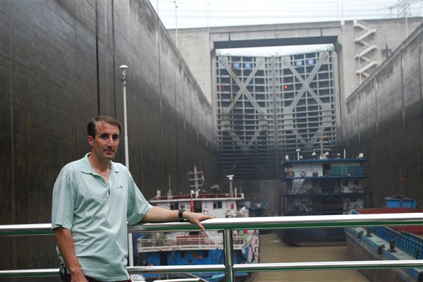 O sexto dia foi dedicado à Barragem das Três Gargantas. Como vocês devem saber, a Barragem das Três Gargantas é a maior barragem do mundo em área, mas não é a mais longa nem a mais alta. A mais alta é a Barragem Hoover (sim!). Antes de chegarmos à barragem, passamos pelo Desfiladeiro de Xiling, o primeiro dos três desfiladeiros que compõem as Três Gargantas. Às 13h45, fizemos uma excursão até o local da barragem para observá-la de vários ângulos de cima. Ao contrário da Barragem Hoover, não é permitido caminhar sobre ela, o que é compreensível, já que a barragem ainda não está concluída. Nossa guia naquele dia foi a Susan, que falava inglês perfeitamente e, às vezes, improvisava para contar piadas ou compartilhar curiosidades. Em cinco viagens à China, ela foi a melhor guia que já tive. Conversamos um pouco sobre filmes. Ela é muito fã do Will Smith. Eu disse a ela o quanto gostei do filme "Eu Sou a Lenda", mas ela disse que era muito assustador para ela, então saiu do cinema na metade. Ela me desafiou a testar meu conhecimento sobre filmes chineses. Fiquei constrangido em admitir que meu conhecimento sobre filmes chineses praticamente se resume a Gong Li. Naquela noite, houve um show de mágica. Eu pretendia ter aulas particulares com o mágico mais tarde, mas acabei não conseguindo marcar nada.