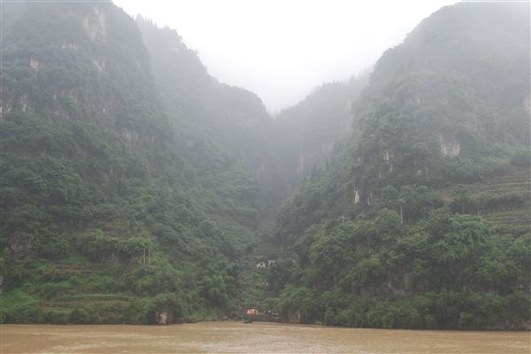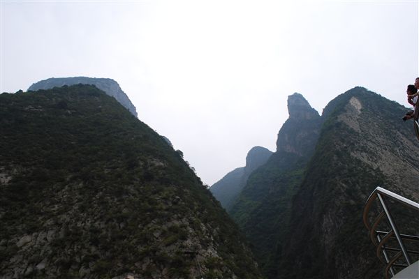O sétimo dia foi o dia de Wushan. Primeiro, atravessamos o Desfiladeiro de Wu, o segundo dos três desfiladeiros. Depois do almoço, chegamos à cidade de Wushan e fomos quase diretamente do nosso navio de cruzeiro para um barco menor, que subiu o Rio Daning, um afluente do Rio Yangtzé. Quando o rio se estreitou a um certo ponto, embarcamos em barcos ainda menores. Penhascos íngremes, macacos e "caixões suspensos" marcaram essa viagem. Caixões suspensos podem ser encontrados em cavernas em penhascos extremamente íngremes. Acho que o termo é um equívoco, porque os caixões não ficam pendurados, eles simplesmente ficam lá dentro da caverna. Eles foram colocados lá há muitos anos. Aaron, nosso guia fluvial, disse que é um mistério até hoje como eles chegaram lá. Certamente me intrigou, já que estavam a centenas de metros de altura em penhascos íngremes. Meu melhor palpite é que eles usaram o mesmo tipo de habilidades e equipamentos de montanhismo que as pessoas usam todos os dias para escalar os penhascos verticais de Red Rock, nos arredores de Las Vegas. Imagino que eles carregaram o caixão, e talvez o corpo, em pedaços ao longo de várias viagens antes de montá-lo na caverna. Pode parecer um trabalho muito árduo, mas essas são as mesmas pessoas que construíram a Grande Muralha da China.