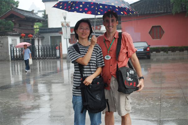 O terceiro dia foi dedicado à Montanha Amarela, ou Huang Shan , como é chamada em chinês. Uma visita a este local foi um dos principais motivos pelos quais optamos pelo cruzeiro mais longo, em vez do mais curto, que não inclui essa parada. Visitei Huang Shan em 1994 por três dias e considero uma das melhores escolhas de destino que já fiz na China. Resumidamente, Huang Shan é uma área cênica com montanhas íngremes cobertas de névoa. Trilhas para caminhadas, algumas delas extremamente íngremes, permitem que os turistas apreciem uma das partes mais belas da China e se exercitem ao mesmo tempo. No entanto, eu não sabia que a viagem de ônibus do navio até lá levava 2 horas e meia, deixando apenas cerca de 5 horas no destino. Da minha visita anterior, eu me lembrava da estrada que levava até lá como sendo extremamente estreita e sinuosa. Minha família tem muita tendência a enjoar em viagens, como conto no meu blog sobre nossas férias de primavera em San Felipe. Além disso, estava chovendo no navio, o que me fez pensar que a chuva seria ainda pior nas montanhas. Então, acabamos desistindo e ficamos no navio. Durante o dia, pegamos um ônibus público para a cidade de Guichi, onde demos uma olhada e contratamos um taxista para nos mostrar os arredores.