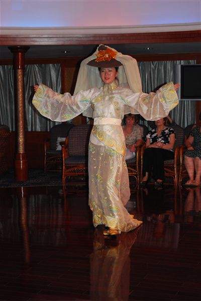 Após o embarque, uma banda se reuniu para recepcionar os outros passageiros à medida que chegavam. Em cada parada do cruzeiro, a tripulação se alinhava para nos dar as boas-vindas. Às 16h, o navio "zarpou", embora não houvesse vela alguma naquela embarcação de cinco andares. Às 17h30, tivemos uma apresentação de boas-vindas. A parte sobre segurança foi bem breve. O diretor de cruzeiro disse que nunca havia ocorrido um acidente no navio e que era impossível ele afundar (tenho quase certeza de que disseram a mesma coisa sobre o Titanic). No entanto, na improvável hipótese de algo acontecer, fomos instruídos a simplesmente seguir as instruções transmitidas pelo alto-falante. Às 18h45, o capitão ofereceu uma recepção de boas-vindas, da qual não participamos, e às 19h30, o jantar foi servido.