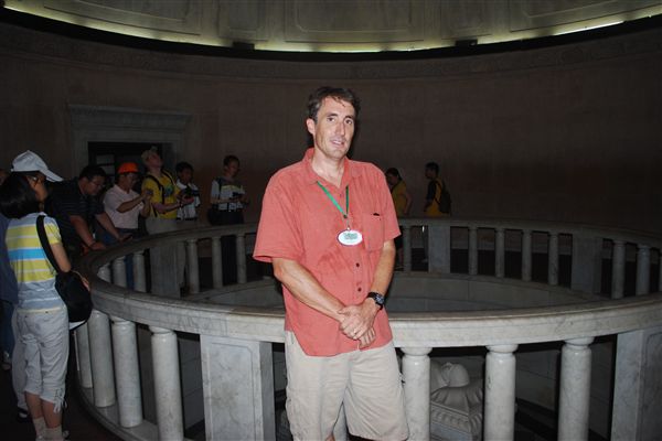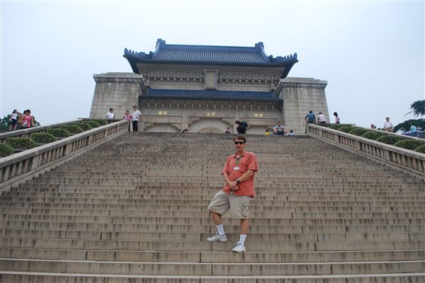 O segundo dia incluiu uma visita a Nanjing, uma importante cidade chinesa e capital provisória da China. Chegamos a Nanjing às 12h30 e fomos de ônibus turístico até o Mausoléu do Dr. Sun Yat-sen . Resumidamente, o Dr. Sun Yat-sen foi fundamental na queda da Dinastia Qing e na fundação da República da China em 1912. Após sua morte em 1925, diferentes facções surgiram no governo, com Mao Tsé-Tung e o Partido Comunista vencendo a guerra civil em 1949. Hoje, os restos mortais do Dr. Sun Yat-sen repousam no topo de uma grande colina em uma área florestal de Nanjing. É preciso subir muitos degraus para chegar ao seu mausoléu, mas isso faz parte da experiência. O teto acima de seu túmulo exibe o emblema da antiga bandeira da República da China, que ainda é usado na bandeira de Taiwan. É o único lugar onde vi esse emblema em cinco viagens à China. Se não me engano, Taiwan ainda se autodenomina "República da China" e considera o Dr. Sun Yat-sen como seu principal fundador. Pedi a uma amiga taiwanesa para confirmar isso, mas ela não tinha certeza.