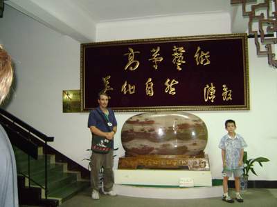 O quarto dia foi o dia de Wuhan. Passamos a maior parte do dia a bordo do navio, pois só fomos para a cidade depois do jantar. Durante esses períodos no barco, geralmente havia algum tipo de aula ou palestra acontecendo. Por exemplo, naquele dia, houve Tai Chi, uma palestra sobre medicina chinesa, uma palestra sobre gravura e talha em pedra, uma palestra sobre pintura chinesa, chá da tarde e uma palestra sobre pintura em garrafas. Nem todos os dias eram tão focados em arte. Outros tinham mais ênfase em história ou geografia. Tudo o que tivemos tempo de fazer em Wuhan foi visitar o Museu de Pedras Raras, que talvez tenha sido o único museu em Wuhan aberto até tão tarde. Nunca na minha vida vi uma coleção de pedras como essa. Muitas eram mais altas do que eu, com formas e cores magníficas. O ponto alto foi uma grande mesa coberta com coleções de pedras que pareciam comida. Dava para perceber que quem criou o lugar realmente amava o que fazia.