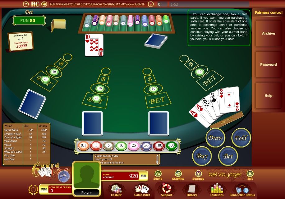 - Troca : O jogador paga uma taxa igual à sua aposta inicial para trocar uma, duas ou todas as cinco cartas.